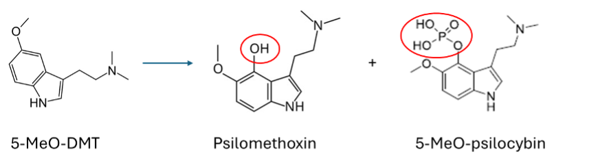The authors make the claim that the enzymatic reactions that produce psilocin are “unexpected” for 5-MeO-DMT and therefore the synthesis of psilomethoxin is “unsubstantiated.” The authors are ignoring the 1988 study by Jochen Gartz where the transformation of diethyl‐tryptamine into 4‐hydroxy‐N,N‐diethyltryptamine (3.3%) and a minor quantity of 4‐phosphoryloxy‐N,N‐diethyltryptamine (≤0.8%) was produced by the Psilocybe cubensis mushroom in an example of biosynthesis of tryptamines. This IS a peer-reviewed article: Gartz J. Biotransformation of tryptamine derivatives in mycelial cultures of Psilocybe. Journal of basic microbiology. 1989;29(6):347-52.