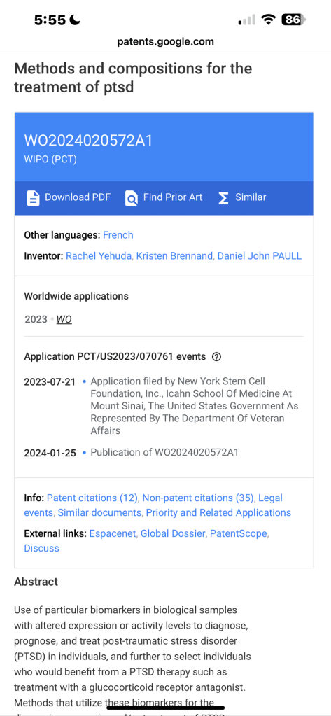 Yeah. Let me just say, so there’s a patent and the assignee, the owner of the patent is the Veterans Administration. And it’s a patent where the inventor is Rachel Yehuda at the Mount Sinai VA. And the patent itself is about using different gene therapy in that I read your genes, Gabe, and because of your specific genes, I go, wow, P450 cytochrome metabolism this.