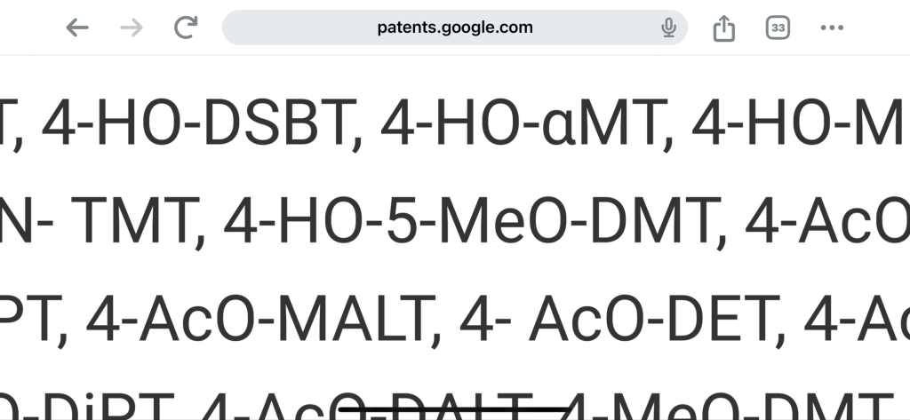 You can also make Psilomethoxin and its pro drug. All the different names, Psilomethoxybin or Methoxy Psilocybin, but it’s the pro drug version of Psilomethoxin. It would be broken down in the human gut and converted into Psilomethoxin. there’s, let’s see, there’s patents on, there’s a number of patents on Psilomethoxin and Psilomethoxcybin.